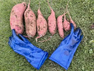 さつまいもの収穫試し掘り ■育てた野菜試しに掘ってみました🙌べにはるかを作りました5月に植えた苗10本のべにはるかの苗🍠おまけで※すずほっくりという新品種の苗を3本、苗やさんからいただいて、、一緒に植えてみました(ワクワク楽しみ) ■エピソード(チャレンジしたきっかけなど)今年で三回目の挑戦です一回目は