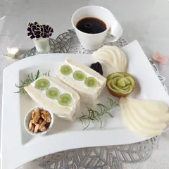 秋のワンプレートごはん ■作品内容秋の食材をたっぷり使って、シャインマスカットのフルーツサンドとマルゲリット・マリーラを盛り付けました。 ■こだわりポイントシャインマスカットの甘さが引き立つように、生クリームは甘さ控えめにしました😋ベランダのローズマリーを添えました。