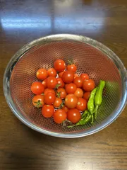 最後じゃなかった😅 先月末に、これで最後かなーと思って収穫したミニトマト、昨日また実家に来てみたら、これだけ収穫できました。もう主となる茎はカットして枯れた枝も整理していたのに、わきめが伸びて…うれしい悲鳴😆