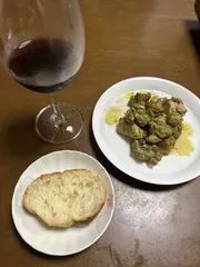 小ぶりな鯵半枚におろすのは😅大変なのでアクアパッサ風にしてみました💘おしゃれにパンとワインで🍷