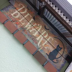 NEW B&B サインボードロング/HALLOWEEN-BEWARE ■作品内容ハロウィーン用のサインボードを作りたくて クロネコちゃんがすごくインパクトがあって私好みのデザインで超お気に入りです笑■こだわりポイントダメージ加工はノコギリでひたすらギコギコ!周囲は青色と紫の濃淡で不気味な雰囲気を表現しました