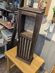 NEW オシャレなレトロキャビネット 店舗オリジナルの作品ということで、いつもより長い時間をかけてDIY教室で作りましたデザインシートだったり、上の板をプラスで付けたり、工程が多くて難しかったのですが、素人の私が作ったものとは思えないくらい、オシャレに可愛くできました!とても大満足です✨