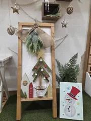 飾り付け ■作品内容リーススタンド&クリスマスリース ■工夫ポイント手作りリースをWSで作ったリーススタンドにかけて飾りました。