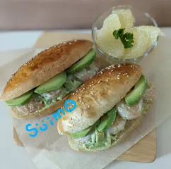 エビとアボカドのサラダサンド🦐🥑 レシピというほどのものでもなく🙏投稿迷いました😓(食べたくなりオリジナルで考えました)🦐エビとアボカドを使ってサラダを作り、手作りパンに挟みました🥑 〈材料 〉パン2つ分・アボカド…1個・むきエビ(小 )…12匹・マヨネーズ…大さじ2・塩、コショウ…少々・レモン汁(あれば)…小々