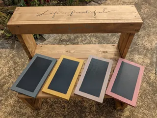 新しい塗料を買ったので色を試してみたくて端材に塗装。せっかくなので黒板塗料も塗ってミニ黒板にしました。このあと薪棚に設置予定です。使い勝手良ければ増産します。😊