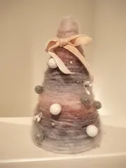 毛糸でクリスマスツリー ■作品内容100均で発泡スチロール製の型を購入し、毛糸を巻き付け、ビーズで飾りつけをしました。