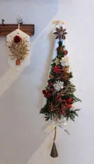 ■作品内容息子の家のお庭からヒバをもらいリースを作りました。 ■工夫ポイント以前作ったミモザのリースのリース台を再利用。ドライにしてあったローズヒップとユーカリの葉を混ぜて、ほんのり色付けしたまつぽっくりをつけて賑やかに♪ケーキについてきたリボンをつけて。材料費なし!※以下カインズクリスマ