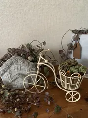 多肉寄せ植え 以前、母にあげた多肉が可哀想な姿になってたので寄せ植えをやり直しました😊この100均自転車はお気に入りらしいです❣️