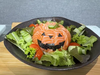 ハロウィン寿司🎃 サーモンをジャックオーランタン🎃に見立てたお寿司を作りました😋💕✨中の具は寿司めしに白胡麻とふるさと納税の訳あり鮭をほぐして混ぜ込みました🐟