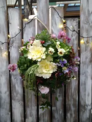 葉牡丹のハンキング ハイポネックス服部先生の講座に参加してきましたまあるく葉牡丹をバランスよく植え込みます先生に助けていただきながら素敵なハンキングになりましたあみねこの太郎と茶茶次郎も一緒に楽しみました