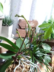 蘭の蕾 GWで植え替えをした蘭が蕾を沢山付けました。面白いことに、昨年花が咲いた茎を切った脇から芽が伸びて、蕾を付けてます。昨年は、お正月に咲きました。今度は、どうかな?