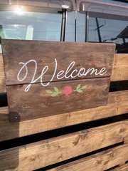 こんなふうに飾りました✨もう何作品目という作品です✨💕今日は大人可愛いビンテージ溢れるフレーム付サインボード作りました。最後の仕上げにブラシで弾いて立体感と夜空🌌に輝く星空をイメージしました✨午後はまた楽しみです✨ありがとうございました✨