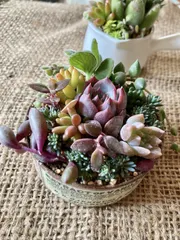 多肉寄せ植え① 近くの道の駅のイベントで、多肉寄せ植えしてきました❣️ 1鉢500円とリーズナブル🌱