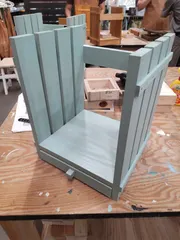 引き出し付きブックスタンド 今回もグリーンをチョイス。引き出し作ってからの色塗り、そして組み立てでしたが、意外と難しくってちょっと引き出しが出っぱってしまっておりますが、そこは手作りのよさですね。