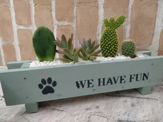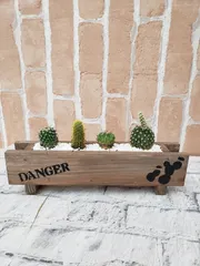 横長プランターとサボテンの寄せ植え 横長プランターを作成し、サボテンを植える、2倍楽しいワークショップでしたステンシルも初挑戦でした