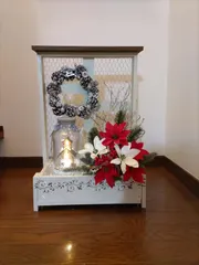 ワイヤーフェンス付きプランター 11月に作成ましたが🎄Xmasの飾り付けをしようと思いながら忙しくて…やっと完成しました❣ダイソーで200円也のグルーガンを初めて使ってリースを作りましたがいびつになってしまいました(😅)。