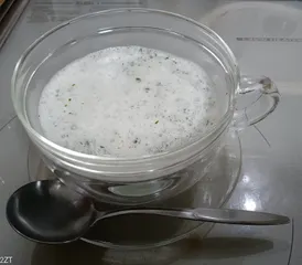 ■材料 玉ねぎ1/2個、人参の葉2本分、バター10g、コンソメ顆粒4.5g、炊いたご飯大さじ1、白ワイン大さじ1、水200cc、牛乳500cc ■作り方 玉ねぎ、人参の葉、みじん切りにする。鍋にバターを熱し玉ねぎを炒める。しんなりしたら人参の葉を炒める。白ワインを加えアルコールを飛ばす。水