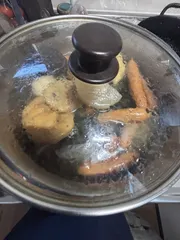 シャトルシェフ おでん 昨夜シャトルシェフでおでん仕込みました😊木枯らし1号だとか💦通りで寒いですね😳おでん👍普通の練り物が入ったおでんです。ウインナーは煮込むと美味しくなくなるので夕方入れてみました。美味しくなってるといいです🤭ウインナーは後から入れたほうが美味しいです💘