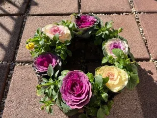 葉牡丹とパンジーのリース リースがまだ余っていたので、お値打ちな葉牡丹とパンジーで寄せ植えしてみました。 パンジーが咲いたらどんな感じになるのか楽しみです。