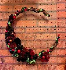 三日月のクリスマスリース。初めて見ました。 リースをカットして出来るのですか。👀‼️ ほんといろんなリースが見れて楽しいです。😉👍️✨