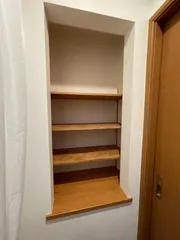 ウチの廊下には、謎の場所が有ります。天井にダウンライト、コンセントもあるから、何か飾るところなのかな?巨大な花瓶を飾ったりもしましたが、なんかスペースもったいない 普通に収納棚として使いたいので、棚をつけました。そのうち扉🚪も付けたいと思います。