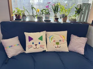 大好きな空間 先日DIYで初ステンシル。わんちゃんの目が滲んでしまいましたが、なんだかニャンコに泣かされたようで可愛い⁉︎