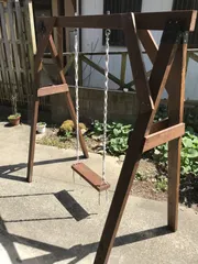 夏のDIY2022 手作りブランコ 子供達の外遊びの為に、2×4と1×4、そしてロープでマクラメ編みして作りました。後で、可愛くステンシルしてあげたいと思います😃