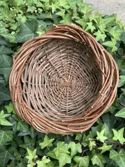籠作り イメージする籠🧺が見つからず、作りました😆 割と細目で柔らかい蔓が採取できたので、細かく編めたほうかな‥芯と縁に使ったのはアイビーリースの芯と同じ枝!裏はこんな感じ直径20センチ強、高さ7センチほど🧺 編んで直ぐの柔らかい時に形を整えて、籠の中にすっぽり入る缶などを入れて上から重