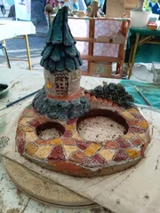 植木鉢の蓋のお庭ガーデン!!! イベントのつちだまワークショップで、植木鉢の蓋を作ってきました🫡穴が空いた所から植物やお花が、ニョッキします✌️😆 見知らぬ方とも、いろいろお話しながらの製作🙌楽しかったです🤩 ※詳細な作業工程は後程、DIYレシピに投稿させて頂きます🙇 製作時間、5時間😅最後は空腹を通