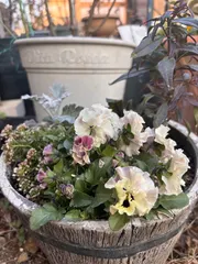フリフリパンジー寄せ植え 植えたては寂しすぎて💦やっとお花がフリフリが出てきました😁