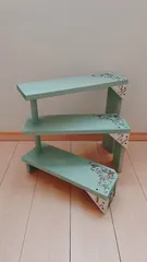 スパイラルラック WS作品の【スパイラルラック】自宅にてステンシルアレンジさせて頂きました🏠🎨たいていアレンジイメージ決まってないままWSに参加してます😅今回は珍しく本体ブラウン系で三角部分バニラに…と思っていたのにギリギリでお色変更考えて行っても、そんなもんです😄自宅でのステンシルも特に決まってないまま、気分次第で