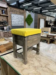 座面のフェイクレザーは持ち込みで作成しました❣️思ったより手数が多かったでずがコンパクトで可愛いスツールに大満足です😊