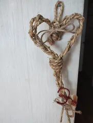 左は2mで一本で作りました■材料わらこなわ【カインズで購入】2m2本または一本でも作れます麻ひも端材ハートオーナメント■作り方①わらこなわ2mを半分にして吊り下げの輪をひと結びします②2mを半分に切って1mにして50センチのところに①のふたつに分かれた一つをのせる③左側から三つ編みにして右側も同様に