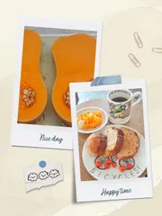 朝ごはん(バターナッツかぼちゃのサイコロサラダ風🤭♪)