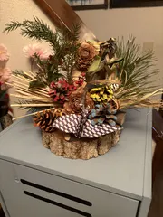 しめ縄飾り 参加して来ました。しめ縄から作り、毛糸🧶も混ぜてナウってみました😊後ろで見えないですが、モリモリです😅