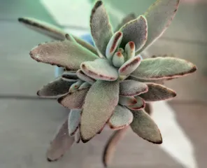 外置きでスパルタの黒兎耳、新芽が出てきて育ってます🌱買った時はタグに黒兎耳って書いてありましたが、さほどエッジが黒くなく月兎耳と変わらない感じ🤔このもけもけした葉が可愛いんですよね。これからはもっと気温が下がるので夜は取り込もうかなと思います🌃