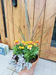 夏の寄せ植え カインズにお買い物に行ったら素敵なマリーゴールド、コルジリネの色に出会いました💕コルジリネ エレクトリックスター、マリーゴールドストロベリーブロンド、ヒューケラです。ヒューケラは、去年カインズで色に一目惚れをして大きく育てて株分けしました👍 マリーゴールドは温度によって色合いが変化するそう