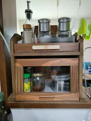 スパイスラックのリアルな使い方 カインズでの初めてのワークショップで、スパイスラックを作りました。先生のテキパキとしたレクチャーのもと、バラバラの板の状態から塗装まで3時間でできるなんて、感動でした!スパイスを入れようと思っていたのですが、基本スパイスは冷蔵庫保管しているので、塩コショウやオイルなどを入れてみました。絵的には映えま