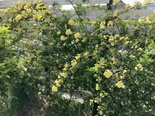 モッコウバラ 庭のモッコウバラが咲き始めました。とっても生育が旺盛で、昨年何度も切りましたが、いつのまにか写真のとおりボサボサです。今年は、もう少し計画的に切り戻しをするつもりです。