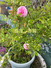 初めて咲いた春霞 お庭の中で植えていた時は、たぶん日照時間の問題があったのでしょうね。 殆ど咲いているのを見なかったのですが、掘り上げて去年鉢植えにして、太陽か一日中当たる場所におきましたら、今年初めて咲いてくれました❣️やはり、薔薇は日当たりの良いところ、土と消毒と肥料ですね。🩷
