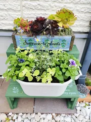 GWS ペチュニアの寄せ植え GWS ペチュニアの寄せ植えを作ってきました😆花材はペチュニア2株、斑入りブルーデージー、ユーフォルビア ダイアモンドフロスト、ヘリクリサム ペティオラレライムです。ちなみに私は虫対策のため、いただけるパークチップはいつもひきません😅 せっかく用意してくださってるのにすみません💦🙏(ナメクジ多いんで