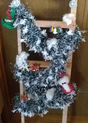 端材で梯子を作り、モールと編みぐるみ、クリスマスオーナメントで飾りました。 置いても、どこかにハンギングしても良いかも😊 サンタクロースの顔がかわいくなりました😍羊毛フェルトで目と頬チクチクしました💗 https://diy-square.cainz.com/annou