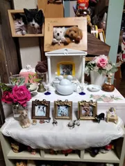 ペットのお仏壇リニューアル🙏WSのミニロングベンチと飾り棚を使用です🩷