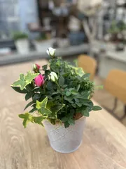 ミニバラの寄せ植え ミニバラの寄せ植え🌹作って来ました。バラは2色、ピンクと白で植えてみました。蕾がたくさんあるので、たくさん咲いてくれたら嬉しい☺️なって思います。