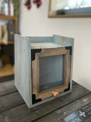 のこぎりでスパイスキャビネット 久しぶりのWS✨楽しかったです🛠️蝶番の取付けもアドバイザーさんの工夫と技術で狂いなく付ける事が出来ました👌 軽くダメージや汚しなど…アレンジしてアイキャッチ画像撮影。その後 扉を磨りガラス風にしたので追加撮影↓室内の明るさが足りず色がイマイチですが😉