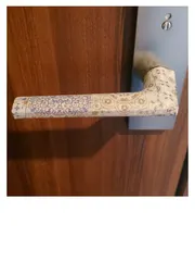 ■工夫した点は、広い狭い、斜め、丸みがあるなど不規則なドアノブの面にシワやタルミが出ないようにパーツ分けをしてテープをカットして貼っていったことです。見た目はもちろん、手で握った時に手触りがいいように貼れたかなと思います♪コーティングが剥がれて見た目も手触りも悪くなり、取り替えるかをずーっと思案して
