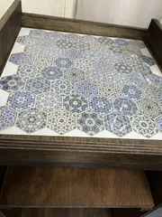 動かせる収納棚(2) 収納棚天板にはカインズで購入したタイルシートを置いて、多少の見栄えを意識してみました。