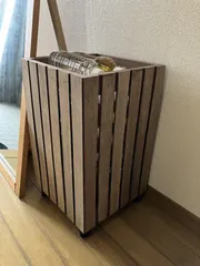 トラッシュカバー 塗装が大変そうだなー、と思ってた作品、やっぱり大変でした😁木目を活かした塗料を選んだ人は先に塗装でした🪣みんな黙々と歌人のように24本の短冊に向き合ってました🥸 下にキャスターが付いてるので、重いものも移動が楽です😚なので、ひとまずペットボトル入れてみました😄