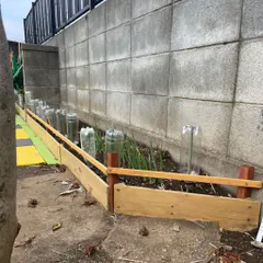 家庭菜園・獣害対策その1 ↑after↓before昨年10月に囲み板材などリニューアルした時の様子です。その後、ペットボトル対策はしてましたが、このエリアは高さの低い板材で囲んでる為、猫やハクビシンが入りやすいらしく、たまに糞害の痕跡がありました。対策として、5本の杭を10cm程引き上げて(一度抜いて打ち直し)して囲みの板