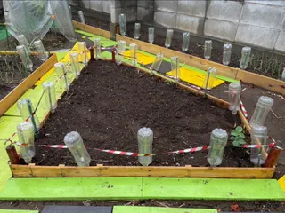去年作ったマルチシートに穴をあげる道具です。強炭酸のペットボトルの底をカットしてハサミで切り込みを入れました。ジャガイモも芽が出てマルチシートがもっと盛り上がってきたら活躍します。